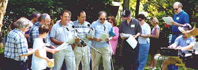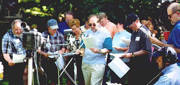 (left to right) Mike Biel, Mickey Saperstone, Fran Odyniec, Jane Lessner, Phil Sabatelli, Ed Cunningham, Ellie Menna Cunningham, Harry Wolf, Mike Muderick and Ed Sciaky