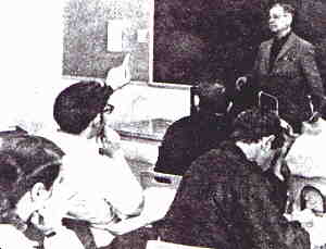 The following is written by Gerry Wilkinson....In preparing this page, I just looked again at Dean Perry's photo. I remember him like it was yesterday, wearing colored shirts with a tie. When most of the professors would have worn a white or light shirt, Perry often wore dark gray or blue. That always stuck in my mind. I thought it showed a man a courage. He wasn't exactly cut from the same mold as other instructors. Thinking back over three decades, I remember him telling me, "if there's one thing I going to teach you in this class, it's to use your brain. Think the unthinkable and never get away from the truth." Ray Didinger and I were talking a little while ago about how Doug Perry taught. Some people didn't like him very much. They thought he demanded too much. His standards were too high. But it wasn't true. They weren't too high. They were where they should be. Write the best you can, "but don't let your style get in the way of the truth." Ray and I were thinking back to how Professor Perry (he always liked the title Professor in preference to Dean) said on the first day of class, "If you ever write a story and use the phrase 'AND A GOOD TIME WAS HAD BY ALL,' you get an automatic F." Someone had asked in one class, "But what if a good time was really had by all?" Perry smiled with that slightly crooked grin of his, "I want signed statements from everyone there stating that they had a good time. If a thousand people attended, and you talked to 999 and they all said that they had a good time, you still can't use that phrase until you interviewed that last person." Truth meant something to him. I went to Temple to learn and Perry taught you. He didn't just head the class. HE TAUGHT YOU! In 1948, both major political parties held their conventions in Philadelphia. J. Douglas Perry was hired by NBC as one of the locals to help cover the events. The next year, Professor Birdsong was replaced by Perry as chairman of the Journalism Department. He joined the university's faculty in 1936, the heart of the depression. He served as department head and later as acting dean of SCAT. He retired in 1968. In a 1972 issue of InterCom, the alumni newsletter for SCAT grads, it was reported that J. Douglas Perry was writing a book entitled, "Incredible University: The Story of Temple." They mentioned that he had completed the first ten chapters. Whether he ever finished the book, I don't know. The photo of Dean Perry above was from the 1967 Templar yearbook. In the Spring of 1971, Perry visited the Temple campus as a guest lecturer in several journalism courses. Here's a photo from one of those classes.