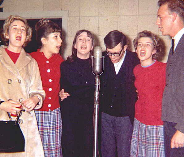 Photo #2 - Marlene Patrick, Dave McLaughlin, Jane Lessner and Ardell Creeley sing (or try to) in this Christmas Skit. (Sung to the tune of East Side - West Side) FM, FM all around the town....
