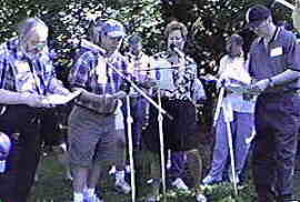 We had a WRTI Reunion in the form of a BAR-B-Q, Sunday, May 24, 1998 at the home of Marlene Patrick. Everyone had brushed up on their WRTI skills. We produced a short PLAYHOUSE 90.1 radio drama on video tape for uploading on to our site. It was produced as a live event (no edits). We had actors/actresses, sound people, etc. As with the old Playhouse 90.1 shows from 30 years ago, it was produced by Gerry Wilkinson and directed by Jerry Klein (JK didn't direct all of them, but did do quite a few). The script entitled, "QUESTING FOR CAMELOT," was written by Gerry Wilkinson from an idea suggested by Jerry Klein and developed by Gerry and his youngest daughter, Zara.